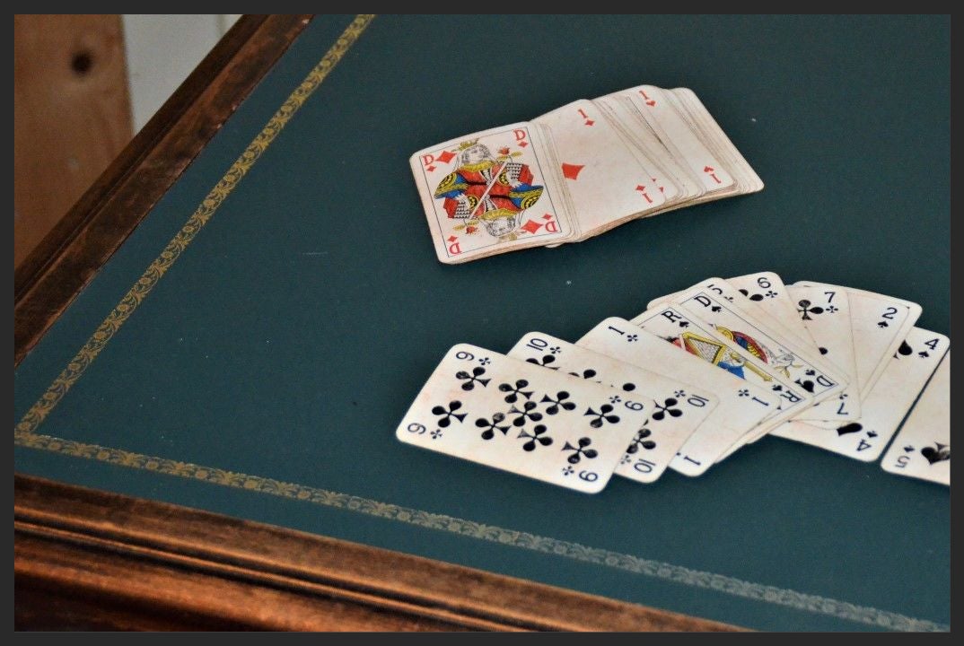 Kaarttafel, bijzettafel, bureautje.Blad ingelegd met Bukram boeklinnen. Goudbies. Fmt blad 98x76. Hoogte tafelblad 68 cm. Kniehoogte onderaan 61 cm.
