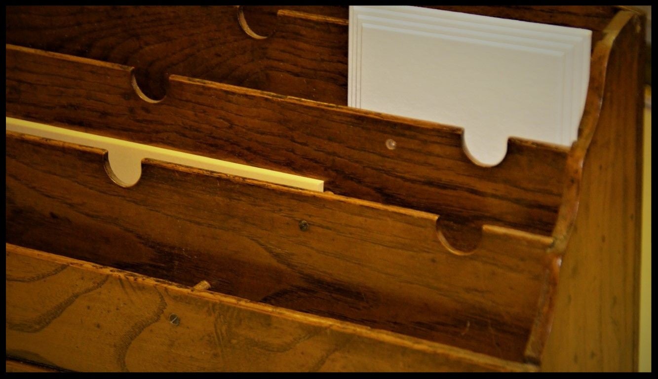 Houten brievenrekje.Ca.1950. Afm.B. 38cm H. 23cm. D. 10cm.