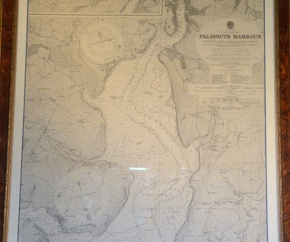 Originele kust-en mondingskaart van Falmouth Harbour aan de zuidkust van England.