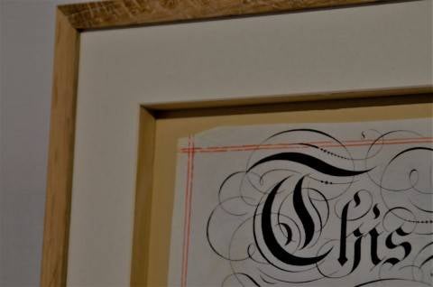 Document "zwevend" ingelijst in blank-eiken kader met verhoogde passe-partout.