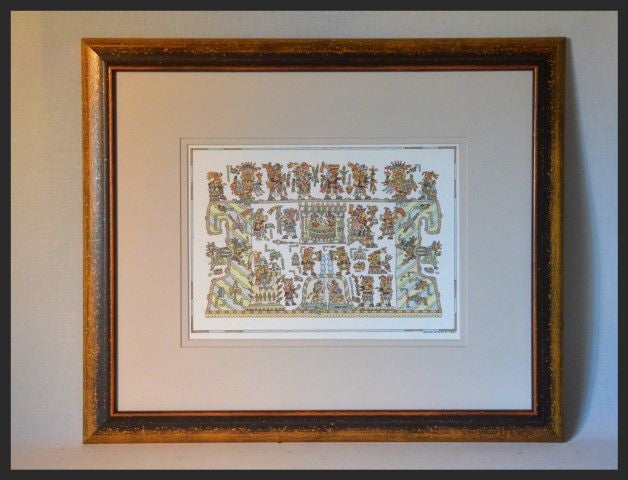 Alle prenten zijn "zwevend" gemonteerd in een goud-bronskleurige lijst met verhoogde passe-partout. Ontspiegeld glas.